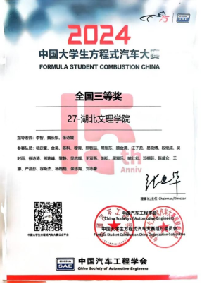 参加2024年中国大学生方程式汽车大赛,并获全国三等奖